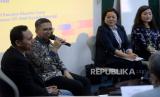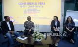 REPUBLIKA.CO.ID,JAKARTA -- Ketua Umum Ikatan Penerbit Indonesia (Ikapi) Arys Hilman Nugraha (dua kiri) bersama Ketua Panitia Indonesia International Book Fair (IIBF) 2023 Mappa Tutu (kiri), General Manager of Korean Cultural Center Indonesia (KCCI) Kim Hyun Joo/Maya (dua kanan) dan Direktur PT. BukuAku Digital Indonesia Catherine Mulyana (kanan) memberikan keterangan terkait pelaksanaan IIBF 2023 di Jakarta, Senin (25/9/2023).