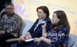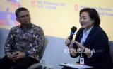 Direktur PT. BukuAku Digital Indonesia Catherine Mulyana (kanan) saat memberikan keterangan terkait pelaksanaan IIBF 2023 di Jakarta, Senin (25/9/2023). IIBF 2023 akan diselenggarakan pada 27 September -1 Oktober 2023 di ICE BSD. Penyelenggaraan IIBF 2023 kali ini mengusung tagline It (FOTO : Republika/Prayogi)