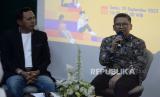Ketua Umum Ikatan Penerbit Indonesia (Ikapi) Arys Hilman Nugraha (kanan) bersama Ketua Panitia Indonesia International Book Fair (IIBF) 2023 Mappa Tutu (kiri) memberikan keterangan terkait pelaksanaan IIBF 2023 di Jakarta, Senin (25/9/2023). IIBF 2023 akan diselenggarakan pada 27 September -1 Oktober 2023 di ICE BSD. Penyelenggaraan IIBF 2023 kali ini mengusung tagline It (FOTO : Republika/Prayogi)