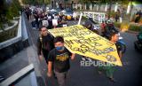 REPUBLIKA.CO.ID,YOGYAKARTA -- Aliansi Mahasiswa UGM melakukan aksi unjuk rasa di Bundaran UGM, Yogyakarta, Senin (25/9/2023).
