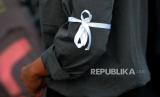 Peserta aksi Aliansi Mahasiswa UGM menggunakan pita berkabung saat aksi unjuk rasa di Bundaran UGM, Yogyakarta, Senin (25/9/2023). Pada aksi ini mereka mengangkat tema September nestapa : rekoleksi kejahatan negara. Untuk merespon banyaknya tindakan represif aparatur negara dan banyaknya kasus agraria seperti Dago Elos, Rempang, Wadas, dan lainnya. Selain itu, juga tuntuk mengingatkan kembali kasus-kasus HAM yang tidak diselesaikan oleh negara. (FOTO : Republika/Wihdan Hidayat)