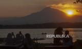 REPUBLIKA.CO.ID,BOYOLALI -- Sejumlah pengunjung bersantai menjelang matahari terbenam di Waduk Cengklik, Boyolali, Jawa Tengah, Senin (25/9/2023).