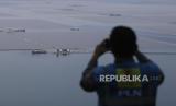 Sebuah kapal melintas di dekat solar panel pada proyek PLTS Terapung di Waduk Cirata, Kabupaten Purwakarta, Jawa Barat, Selasa (26/9/2023). PLTS terapung terbesar se-Asia Tenggara berkapasitas 192 megawatt peak (MWp) itu terbentang di area seluas 200 hektar yang terbangun dalam 13 blok dengan lebih dari 340.000 solar panel. PLTS tersebut mampu memproduksi 245 juta kWh energi bersih per tahun dan dapat melistriki lebih dari 50.000 rumah serta menekan emisi karbon lebih dari 200.000 ton per tahun. (FOTO : Republika/Putra M. Akbar)