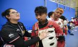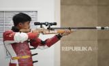 REPUBLIKA.CO.ID, HANGZHOU -- Petembak Muhammad Sejahtera Dwi Putra membidik sasaran pada final menembak sasaran bergerak 10m Asian Games 2022 di Fuyang Yinhu Sports Centre, Hangzhou, China, Selasa (26/9/2023). Tera kembali meraih medali emas usai mencetak total poin terbanyak 378.