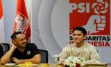 REPUBLIKA.CO.ID,JAKARTA -- Ketua umum Partai Solidaritas Indonesia (PSI) Kaesang Pangarep (kanan) didampingi Dewan Pembina PSI Giring Ganesha (kiri) saat menggelar rapat perdana dengan sejumlah jajaran pengurus PSI di DPP PSI, Jakarta, Selasa (26/9/2023).