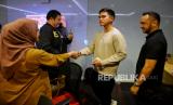 Ketua umum Partai Solidaritas Indonesia (PSI) Kaesang Pangarep (kedua kanan) didampingi Dewan Pembina PSI Giring Ganesha (kanan) bersalaman dengan pengurus saat akan menggelar rapat perdana dengan sejumlah jajaran pengurus PSI di DPP PSI, Jakarta, Selasa (26/9/2023). Rapat perdana tersebut digelar usai putra bungsu Presiden Joko Widodo, Kaesang Pangarep didapuk sebagai Ketua Umum PSI pada Kopdarnas PSI pada Senin (25/9) kemarin. Rapat tersebut membahas mengenai berbagai evaluasi dan rancangan strategi PSI dalam menghadapi Pemilu 2024. (FOTO : Republika/Thoudy Badai)
