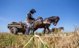REPUBLIKA.CO.ID, INDRAMAYU -- Pekerja menggunakan kuda untuk mengangkut bongkahan tanah yang diambil dari sawah yang mengering di Desa Pecuk, Sindang, Indramayu, Jawa Barat, Selasa (26/9/2023).