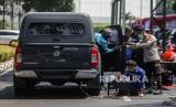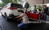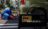 Petugas melakukan uji emisi kendaraan mobil di kawasan Gelora Bung Karno, Jakarta, Rabu (27/9/2023). Dinas Lingkungan Hidup DKI Jakarta dan Ditlantas Polda Metro Jaya akan kembali melakukan razia dan tilang emisi kendaraan di tempat pada bulan Oktober. Selain itu, Pemprov DKI Jakarta juga akan menerapkan tarif disinsentif di 131 titik lokasi parkir bagi kendaraan yang tidak lulus uji emisi. (FOTO : Republika/Putra M. Akbar)