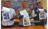 REPUBLIKA.CO.ID,  SERANG.  --  Polisi menggiring tersangka agen judi online saat konferensi pers di Mapolda Banten, Serang, Banten, Rabu (27/9/2023).