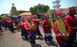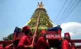 REPUBLIKA.CO.ID,YOGYAKARTA -- Abdi dalam membawa gunungan saat acara puncak Sekaten Keraton Yogyakarta menuju halaman Masjid Gedhe Kauman, Yogyakarta, Kamis (28/9/2023).