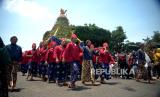 Abdi dalam membawa gunungan saat acara puncak Sekaten Keraton Yogyakarta menuju halaman Masjid Gedhe Kauman, Yogyakarta, Kamis (28/9/2023). Garebeg Maulud yang diadakan setiap 12 Rabiul Awal atau Maulud sebagai perayaan hari lahir Nabi Muhammad yang selalu dinantikan oleh masyarakat dan wisatawan. Garebeg Maulud ini sebagai wujud syukur dan sedekah dari Keraton Yogyakarta atas berkah kemakmuran yang dapat dinikmati bersama masyarakat. Acara puncak ini merupakan rangkaian perayaan Sekaten yang pada awalnya digunakan sebagai sarana dakwah oleh Sri Sultan HB I. Ada tujuh gunungan yang dibagikan kepada masyarakat, sedangkan yang dua masing-masing diberikan ke Kepatihan dan Pura Pakualaman. (FOTO : Republika/Wihdan Hidayat)