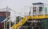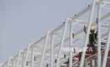REPUBLIKA.CO.ID, TEBET -- Pekerja menyelesaikan pembangunan jembatan penyeberangan orang (JPO) Soepomo di Tebet, Jakarta Selatan, Jumat (29/9/2023).