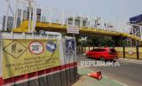 Kendaraan melintas di dekat pembangunan jembatan penyeberangan orang (JPO) Soepomo di Tebet, Jakarta Selatan, Jumat (29/9/2023). Pemerintah Provinsi DKI Jakarta menambah lima pembangunan JPO yang ditargetkan selesai pada tahun ini. Adapun lima lokasi pembangunan JPO tersebut di Kebayoran Lama, Jalan Prof Soepomo, Jalan Pangeran Tubagus Angke, Jalan Akses Marunda dan Jalan I Gusti Ngurah Rai. (FOTO : Republika/Putra M. Akbar)