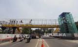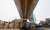Suasana pembangunan jembatan penyeberangan orang (JPO) Soepomo di Tebet, Jakarta Selatan, Jumat (29/9/2023). Pemerintah Provinsi DKI Jakarta menambah lima pembangunan JPO yang ditargetkan selesai pada tahun ini. Adapun lima lokasi pembangunan JPO tersebut di Kebayoran Lama, Jalan Prof Soepomo, Jalan Pangeran Tubagus Angke, Jalan Akses Marunda dan Jalan I Gusti Ngurah Rai. (FOTO : Republika/Putra M. Akbar)