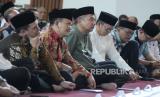 Pj Gubernur Jawa Barat Bey Machmudin (ketiga kiri) bersama sejumlah pejabat Pemprov Jawa Barat hadir saat peringatan Maulid Nabi Muhammad SAW 1445 H Tingkat Sekretariat daerah Provinsi Jawa Barat di Masjid Al Muttaqin, komplek Gedung Sate, Kota Bandung, Jumat (29/9/2023). Dalam acara tersebut disampaikan tetantang suri teladan Nabi Muhammad SAW bagi umat manusia, sebagai panutan dalam menjalani kehidupan agar senantiasa melakukan kebaikan. (FOTO : Edi Yusuf/Republika)