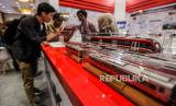 Sejumlah pengunjung membeli tiket pada acara KAI Expo 2023 di Jakarta Convention Center, Jakarta, Sabtu (30/9/2023). KAI Expo 2023 menyediakan 73.500 tiket promo kereta api jarak jauh untuk berbagai perjalanan kereta api jarak jauh luxury, eksekutif, bisnis dan ekonomi dengan harga mulai dari Rp 50.000 hingga Rp 300.000 untuk keberangkatan 1-31 Oktober 2023. (FOTO : Republika/Putra M. Akbar)