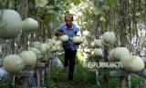 Warga memanen buah melon madu jenis honey globe yang dibudiddayakan dengan pola tanam hidroponik di lahan terlantar perkotaan, Banda Aceh, Aceh, Sabtu (30/9/2023). Hasil budi daya melon madu dengan masa tanam hingga panen selama 60 hari itu dipasarkan dengan harga Rp25.000 per kilogram. (FOTO : Antara/Irwansyah Putra )
