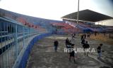 Suasanai dalam stadion usai doa bersama pada peringatan setahun Tragedi Kanjuruhan di Stadion Kanjuruhan, Malang, Jawa Timur, Ahad (1/10/2023). (FOTO : Republika/Wihdan Hidayat)