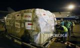 REPUBLIKA.CO.ID,TANGERANG -- Petugas BNPB bersiap memasukkan bantuan kemanusian ke pesawat untuk dikirim ke Libya di Terminal Kargo Bandara Soekarno-Hatta, Tangerang, Banten, Senin (2/10/2023).