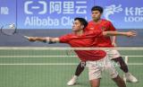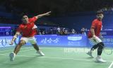 REPUBLIKA.CO.ID, JAKARTA -- Pebulu tangkis Indonesia Daniel Marthin (kiri) dan Leo Rolly Carnando mengembalikan kok ke arah lawannya pebulu tangkis Makau Leong Iok Chong dan Vong Kok Weng pada babak 32 besar ganda putra Asian Games 2022 di Hangzhou Binjiang Gymnasium, Hangzhou, China, Senin (2/10/2023).