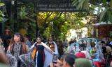 Berbagai bentuk busana dari bahan batik diperagakan di jalan kampung yang disulap menjadi catwalk.