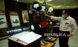 REPUBLIKA.CO.ID, TEGAL -- Pengunjung memperhatikan replika pedang zaman sejarah saat pameran replika benda bersejarah zaman Rasulullah SAW di Rumah Sakit Harapan Anda, Tegal, Jawa Tengah, Senin (2/10/2023).
