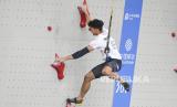 REPUBLIKA.CO.ID,JAKARTA -- Pemanjat tebing Indonesia Kiromal Katibin memanjat pada babak kualifikasi speed putra Asian Games 2022 di Shaoxing Keqiao Yangshan Sport Climbing Centre, Shaoxing, China, Selasa (3/10/2023).