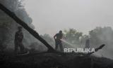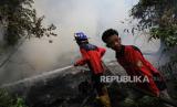 REPUBLIKA.CO.ID, PALANGKA RAYA -- Relawan pemadam kebakaran berupaya memadamkan api yang membakar lahan di Jalan RTA Milono Km 7, Palangka Raya, Kalimantan Tengah, Selasa (3/10/2023).