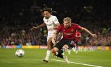 Pemain Manchester United Sofyan Amrabat (kiri) berebut bola dengan pemain Galatasaray Kaan Ayhan dalam pertandingan Grup A Liga Champions 2023-2024 antara Manchester United melawan Galatasaray di Old (FOTO : AP Photo/Dave Thompson)