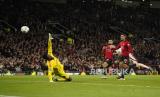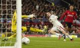 Gawang Manchester United dijebol pemain Galatasaray Kerem Akturkodalam pertandingan Grup A Liga Champions 2023-2024 antara Manchester United melawan Galatasaray di Old Trafford, Manchester, Rabu (4/10 (FOTO : AP Photo/Dave Thompson)