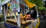 Pelajar SMPN 6 Yogyakarta membawa gunungan makanan jadi saat karnaval menyambut HUT ke-267 Kota Yogyakarta di Tugu Pal Putih, Yogyakarta, Rabu (4/10/2023). Untuk menyambut HUT ke-267 Kota Yogyakarta berbagai sekolah kompak melakukan karnaval dengan berbagai tema. HUT Kota Yogyakarta pada tahun ini mengangkat tema Tatag, Teteg, Tutug yang juga berarti semangat dan harapan dalam melayani masyarakat. Mereka melakukan karnaval dengan berkeliling di seputar sekolah berada. Mulai dari kostum pelaku seni, pahlawan, petani, hingga busana tradisional digunakan oleh pelajar saat karnaval. (FOTO : Republika/Wihdan Hidayat)