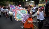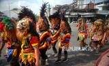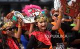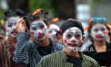 REPUBLIKA.CO.ID,YOGYAKARTA -- Pelajar SMPN 8 Yogyakarta menggunakan riasan edan-edanan saat karnaval menyambut HUT ke-267 Kota Yogyakarta di kawasan Kotabaru, Yogyakarta, Rabu (4/10/2023).