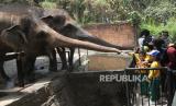 REPUBLIKA.CO.ID,BATU -- Sejumlah pengunjung memberi makan gajah pada peringatan hari satwa sedunia di Jatimpark 2, Batu, Jawa Timur, Rabu (4/10/2023).