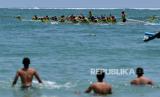 REPUBLIKA.CO.ID,BADUNG -- Peserta mengikuti kejuaraan perahu naga di Pantai Jerman, Badung, Bali, Rabu (4/10/2023).