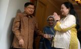 REPUBLIKA.CO.ID, JAKARTA. -- Ketua DPP Partai Demokrasi Indonesia Perjuangan (PDIP) sekaligus Ketua DPR Puan Maharani dan Wakil Presiden ke-10 dan ke-12 Jusuf Kalla (kiri) usai bersilaturahmi di kediaman JK, Kebayoran Baru, Jakarta, Rabu (4/10/2023).