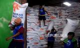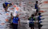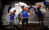 REPUBLIKA.CO.ID, JAKARTA -- Pekerja mengangkat beras saat bongkar muat di Pasar Induk Beras Cipinang, Jakarta, Rabu (4/10/2023).