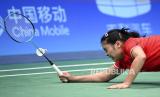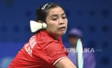REPUBLIKA.CO.ID, HANGZHOU -- Pebulu tangkis tunggal putri Indonesia Gregoria Mariska Tunjung gagal mengembalikan kok ke arah lawannya asal Jepang, Aya Ohori, di babak perempat final Asian Games 2022 di Binjiang Gymnasium, Hangzhou, China, Kamis (5/10/2023).