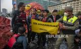 REPUBLIKA.CO.ID, JAKARTA -- Sejumlah aktivis Greenpeace Indonesia membawa boneka gurita raksasa saat menggelar aksi kampanye tanpa oligarki di Bundaran Hotel Indonesia (HI), Jakarta, Jumat (6/10/2023). Dalam aksinya mereka mendesak para capres-cawapres memiliki komitmen yang serius dan konkret untuk berpihak kepada rakyat dan melepaskan diri dari agenda-agenda oligarki.