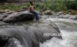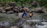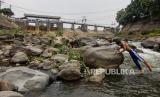 REPUBLIKA.CO.ID, BOGOR -- Anak-anak bermain di aliran Sungai Ciliwung yang menyusut di Bendungan Katulampa, Kota Bogor, Jawa Barat, Jumat (6/10/2023).