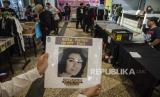 Pegunjung melihat koleksi vinil musisi Rafika Duri saat pekan kaset dan vinyl di Food Plaza IBCC, Bandung, Jawa Barat, Jumat (6/10/2023). Acara tersebut merupakan bazar koleksi kaset, VCD, dan Vinyl musik dari era 50-an hingga 90-an yang dijual dengan harga Rp25 ribu hingga jutaan rupiah sekaligus sebagai ajang berbagi informasi bagi para kolektor dari sejumlah daerah di Indonesia. (FOTO : ANTARA FOTO/Novrian Arbi)
