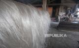 Pekerja memproduksi mi soun di Ngawen, Klaten, Jawa Tengah, Jumat (6/10/2023). Mi soun yang diproduksi secara tradisional dengan memanfaatkan cahaya matahari untuk proses pengeringan itu, saat musim kemarau ini dapat mengolah bahan tepung aren kurang lebih sebanyak 500 kilogram per hari yang dijual dengan harga Rp23 ribu per kilogram mi soun.  (FOTO :  ANTARA FOTO/Aloysius Jarot Nugroho)