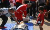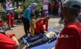 REPUBLIKA.CO.ID, SEMARANG -- Petugas Palang Merah Indonesia (PMI) memberikan pelatihan Bantuan Hidup Dasar (BHD) kepada warga di Taman Pancasila, Semarang, Jawa Tengah, Ahad (8/10/2023).