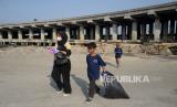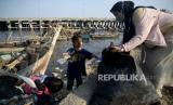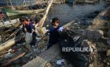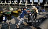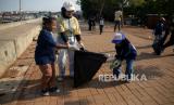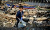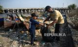 REPUBLIKA.CO.ID, JAKARTA -- Peserta didik Kelas Jurnalis Cilik didampingi relawan memungut sampah saat kegiatan bersih-bersih pesisir di kawasan Kalibaru, Cilincing, Jakarta, Ahad (8/10/2023).