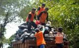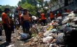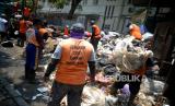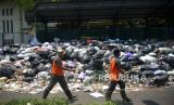 REPUBLIKA.CO.ID, KOTA BARU -- Petugas sampah gabungan mengangkut tumpukan sampah di depo penampungan sampah sementara Kotabaru, Yogyakarta, Senin (9/10/2023).