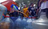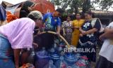 REPUBLIKA.CO.ID, SERANG -- Petugas Badan Penanggulangan Bencana Daerah (BPBD) Kota Serang membagikan air bersih kepada warga di Kampung Kilasah, Serang, Banten, Senin (9/10/2023).