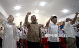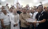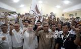 REPUBLIKA.CO.ID,JAKARTA -- Ketua Umum DPP Perisai Prabowo Ahmad Kailani menyerahkan surat deklarasi kepada Sekjen Partai Gerindra seklaigus Ketua Dewan Penasehat DPP Perisai Prabowo Ahmad Muzani saat deklarasi Prabowo For Presiden 2024 di Jakarta, Senin (9/10/2023). Deklarasi yang dihadiri oleh 500 relawan dan undangan dari berbagai daerah tersebut secara resmi memberi dukungan kepada Prabowo Subianto menjadi presiden tahun 2024.