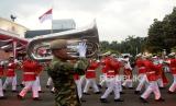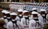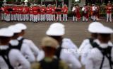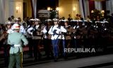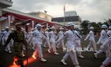 Pasukan mengikuti Upacara Parade Senja di Lapangan Bela Negara, Kementerian Pertahanan, Jakarta, Senin (9/10/2023). Pasukan mengikuti Upacara Parade Senja di Lapangan Bela Negara, Kementerian Pertahanan, Jakarta, Senin (9/10/2023). Upacara parade senja yang ditandai dengan penuruan bendera merah putih tersebut merupakan bagian dari rangkaian hari ulang tahun (HUT) ke-78 Tentara Nasional Indonesia (TNI). (FOTO : Republika/Prayogi)
