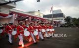 Pasukan mengikuti Upacara Parade Senja di Lapangan Bela Negara, Kementerian Pertahanan, Jakarta, Senin (9/10/2023). Upacara parade senja yang ditandai dengan penuruan bendera merah putih tersebut merupakan bagian dari rangkaian hari ulang tahun (HUT) ke-78 Tentara Nasional Indonesia (TNI). (FOTO : Republika/Prayogi)