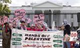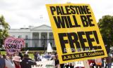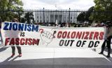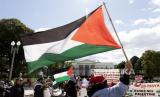 Ratusan massa menggelar aksi unjuk rasa untuk memberikan dukungan bagi rakyat Palestina di depan Gedung Putih, Ahad (8/10/2023) waktu setempat. Massa mendesak dihentikannya penjajahan Palestina oleh zionis Israel yang menyebabkan konflik berkepanjangan di kawasan tersebut. (FOTO : EPA-EFE/Michael Reynolds)