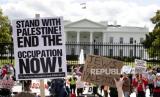 REPUBLIKA.CO.ID,WASHINGTON DC -- Ratusan massa menggelar aksi unjuk rasa untuk memberikan dukungan bagi rakyat Palestina di depan Gedung Putih,Washington, Amerika Serikat, Ahad (8/10/2023) waktu setempat.